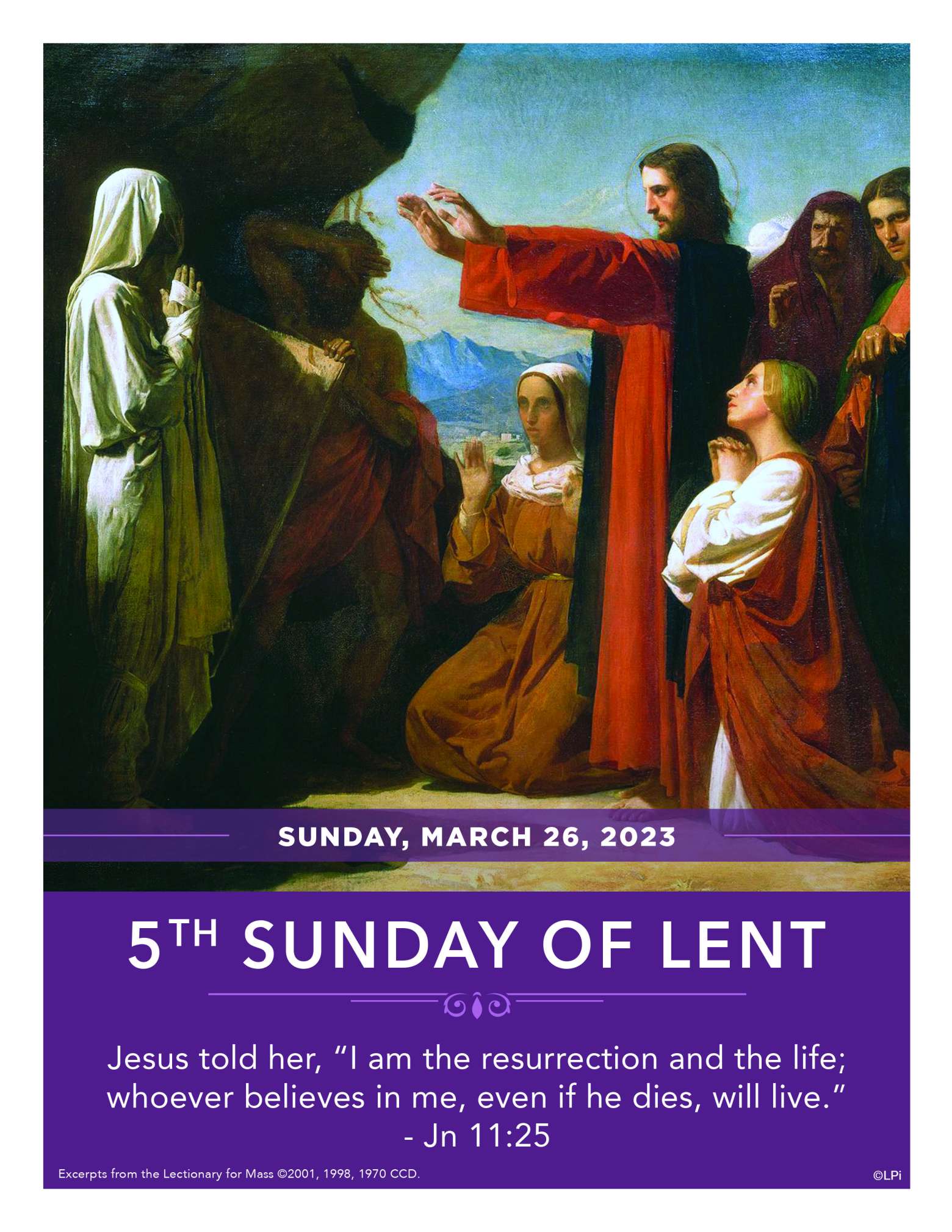 This Sunday is the Fifth Sunday in Lent. The following Sunday is Palm Sunday of the Passion of Our Lord and the beginning of Holy Week. The Sunday after is Easter Sunday of the Resurrection of Our Lord. The Lenten Season is fast drawing to a close and the Easter Festival is almost upon us! I invite everyone to make the Easter Season HOLY by participating in as many of the Masses and Services as you can during Holy Week. Our EASTER SCHEDULE has all the details. Please join us on Holy Thursday, Good Friday and Holy Saturday.