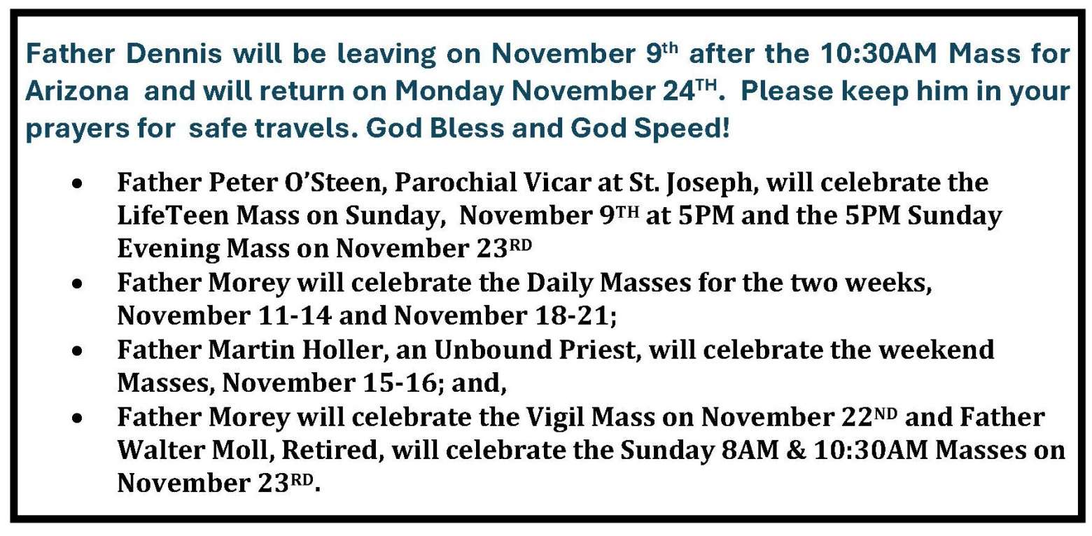 Phishing Scams Alert: Please be aware, you will NEVER receive an email or text from me or any of the parish staff requesting donations, gift cards, or similar items.