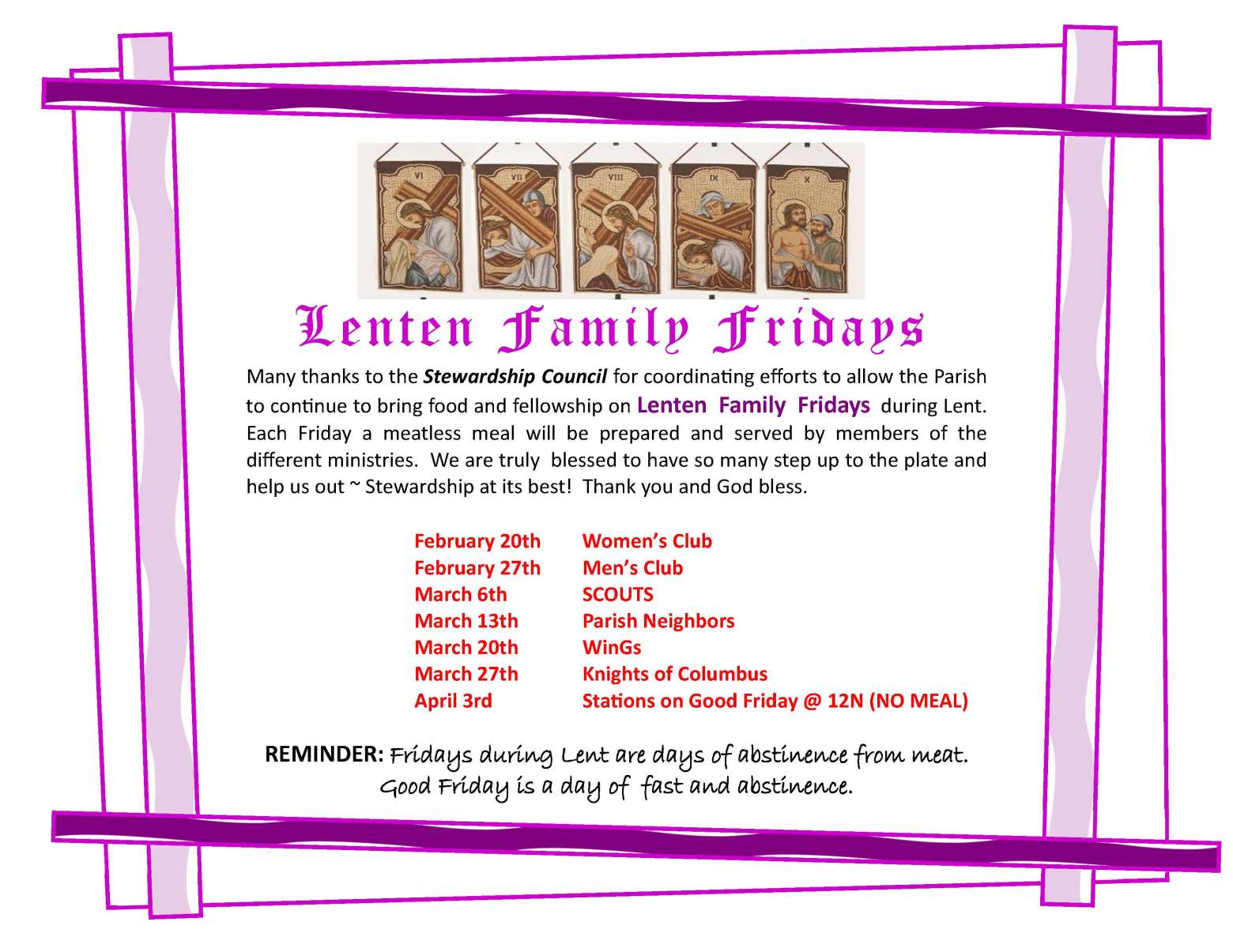 We encourage all our parish children to use their envelopes at the Sunday Morning Masses. Children can make a monetary donation or just write something on the envelope; a good deed, a prayer, artwork, etc. Father Dennis will hold a basket and invite the children to come forward at the appropriate time. If you have forgotten an envelope or need more, they are available in the Narthex.